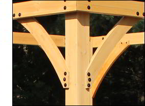 The cross members of the gazebo are actually assembled from several smaller pieces of cedar that get bolted together. They might appear to have been handled thus to facilitate getting all the components of the structure into packaging of a reasonable size. To their credit, once they’re locked down, they’re surprisingly strong, and consisting of several discrete lengths of wood, should be ill-disposed toward warping.